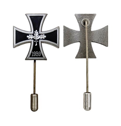 Diese hochwertig gearbeitete Anstecknadel zeigt das Eiserne Kreuz 1939 in der offiziellen Ausführung von 1957. Die Abmessungen des Abzeichens betragen 25 x 25 mm bei einer Stärke von 2 mm, die Nadel selbst misst 42 mm in der Länge.
