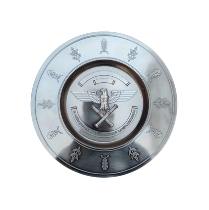 Zum Verkauf steht hier eine erstklassige Reproduktion der von Reichsmarschall Göring 1942 gestifteten „Ehrenschale für hervorragende Kampfleistungen der Luftwaffe“ in der sogenannten „57er“ Version. Die Verleihung dieser nichttragbaren Auszeichnung erfolgte für hervorragende Kampfleistungen an Angehörige von Luftwaffen-Felddivisionen für Erdkampfeinsätze.